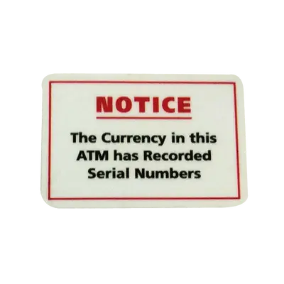 ATM Decal Notice: The Currency in this ATM has Recorded Serial Numbers.